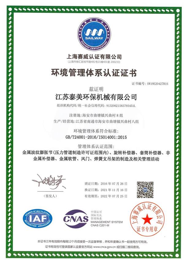 江蘇泰美環保機械有限公司專業生產金屬波紋管膨脹節、不銹鋼金屬軟管、非金屬耐高溫織物補償器、脫硫擋板門、彈簧支吊架、環保機械、水泥機械、建材機械等產品,是目前國內規模較大的自主研制和技術開發能力的現代化企業。